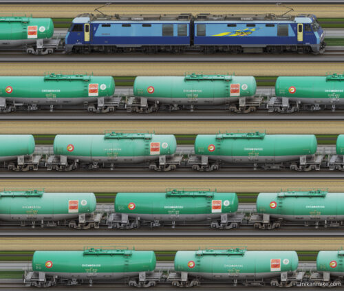 2025年9月11日(木)に運転された篠ノ井線の石油輸送貨物列車、2086レを記録した長編成サイドビューです。牽引は高崎機関区所属のEH200-8で貨車はタキ1000形10両でした。