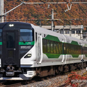 2026年4月12日(日)大宮総合車両センター所属のE257系5000番台OM-91編成を使用した特急あずさ74号が松本→新宿間で運転されました。その関係で前日に長野総合車両センターへ回送されていた同編成の送り込み回送が長野→松本間で運転されました。