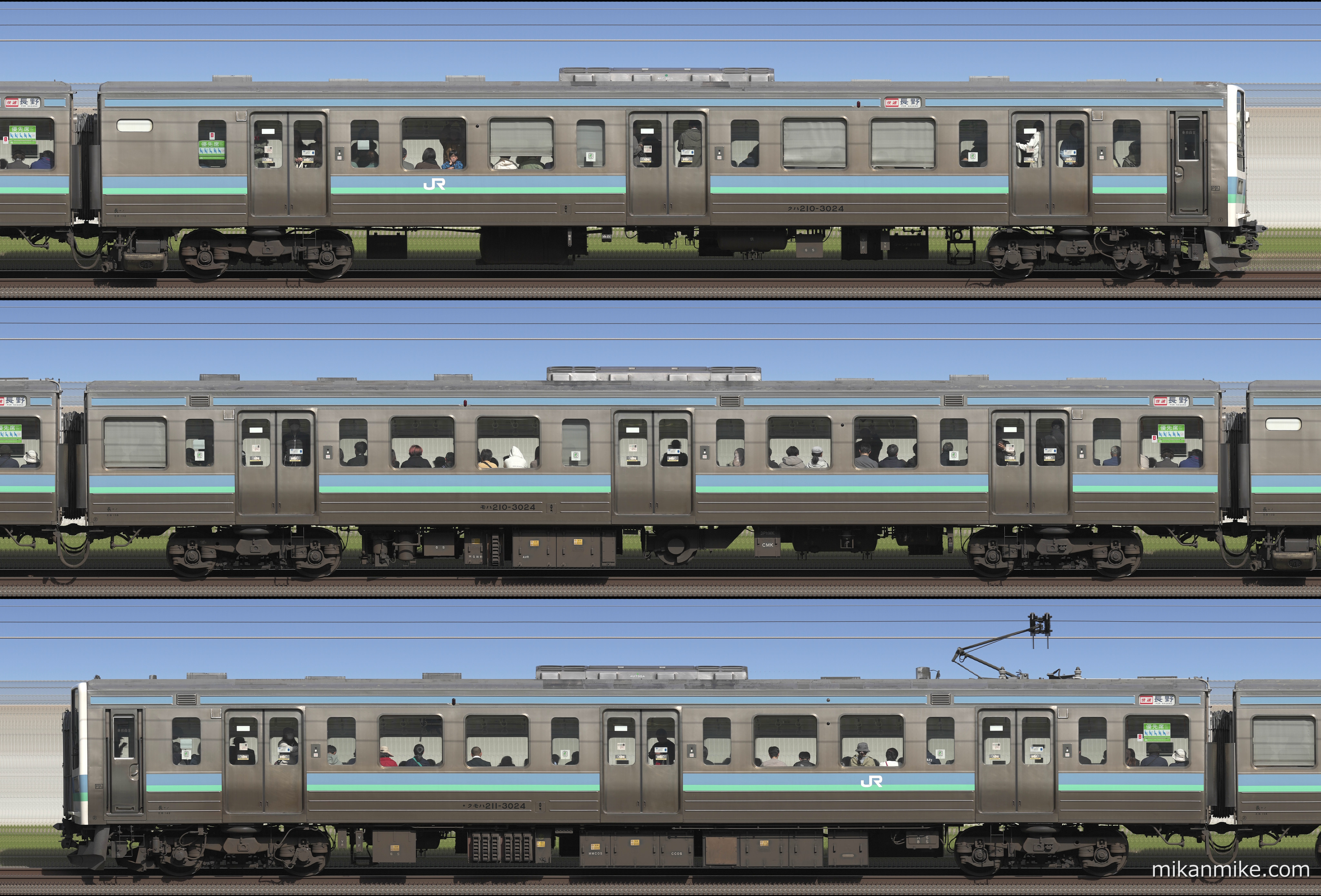 2026年4月25日(土)に運転された中央東線~篠ノ井線の211系快速列車、上諏訪発長野行き2535Mの長編成サイドビューです。車両は長野総合車両センター所属の211系N313編成で運転されました。