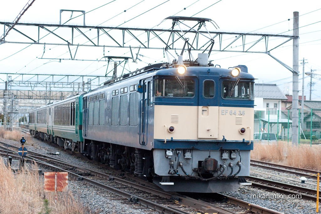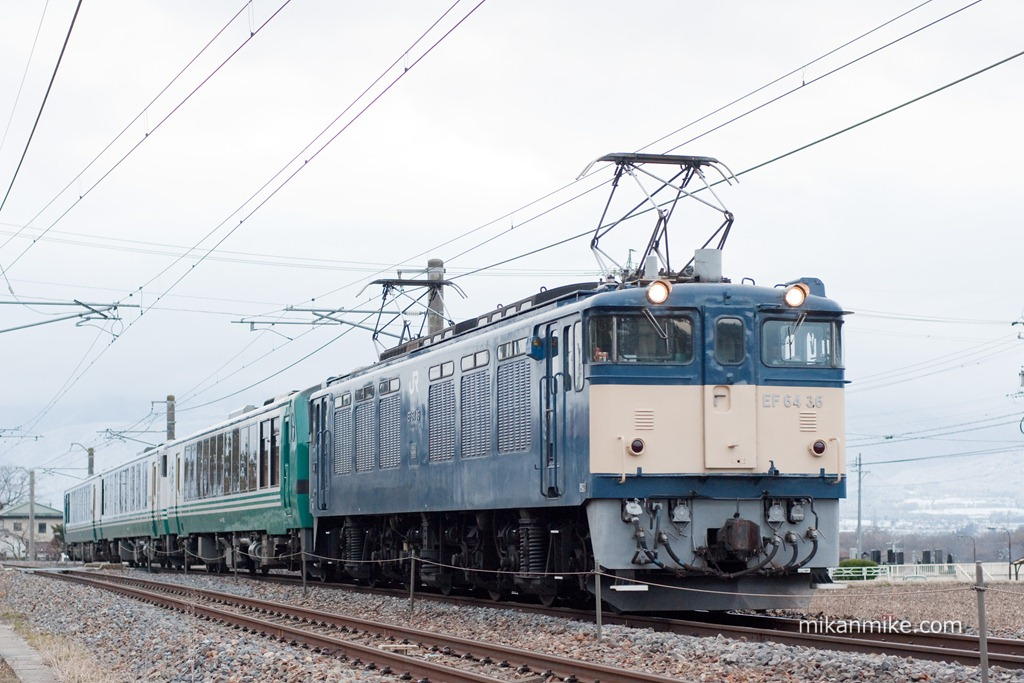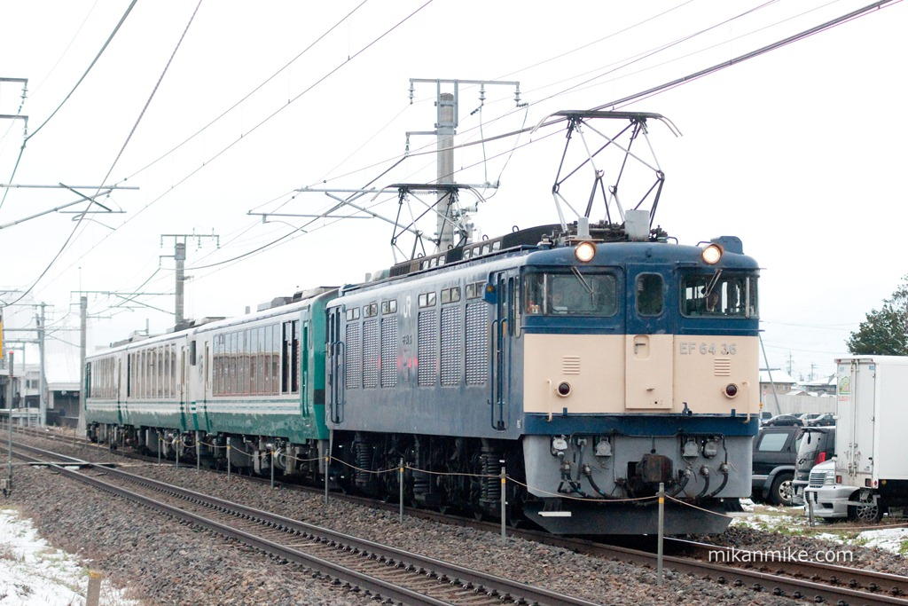 「リゾートしらかみ『ブナ』編成」が返却回送されました。長野まではEF64-36が牽引しました。