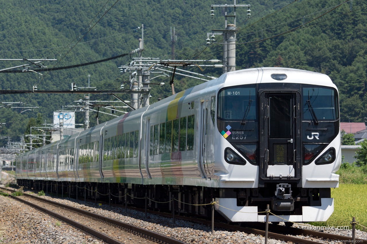 2012年8月24日(金)松本車両センター所属のE257系M101編成が長野総合車両センターを出場して試運転を兼ねて所属先へ回送されました。