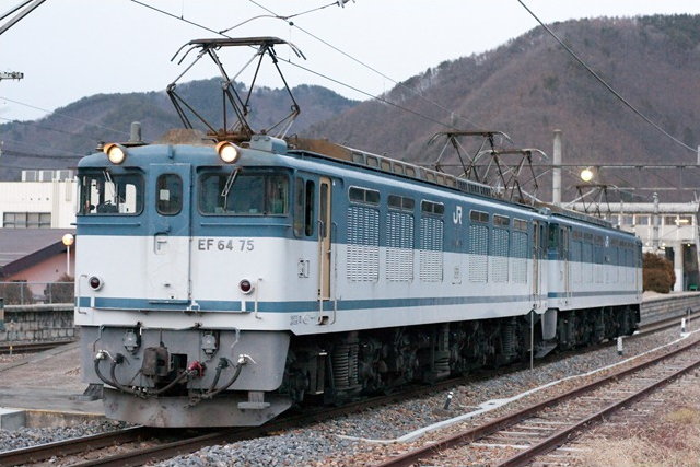 2010年2月8日(月)今週も篠ノ井線で8560レが運転されました。今回はEF64-75+EF64-76の重連でした。
